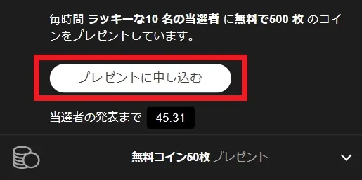いまだけ期間限定!無料50コインプレゼントに参加できます